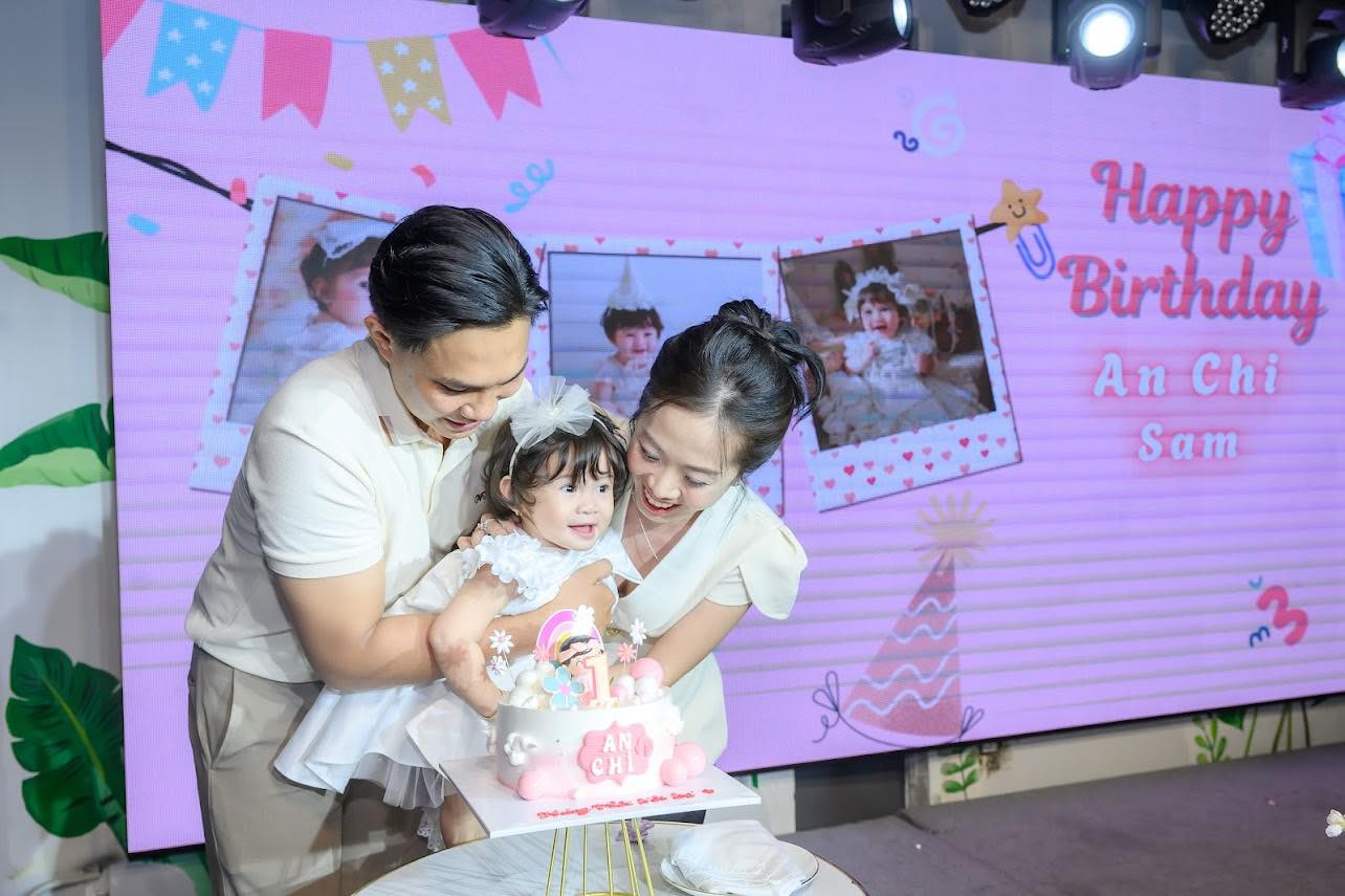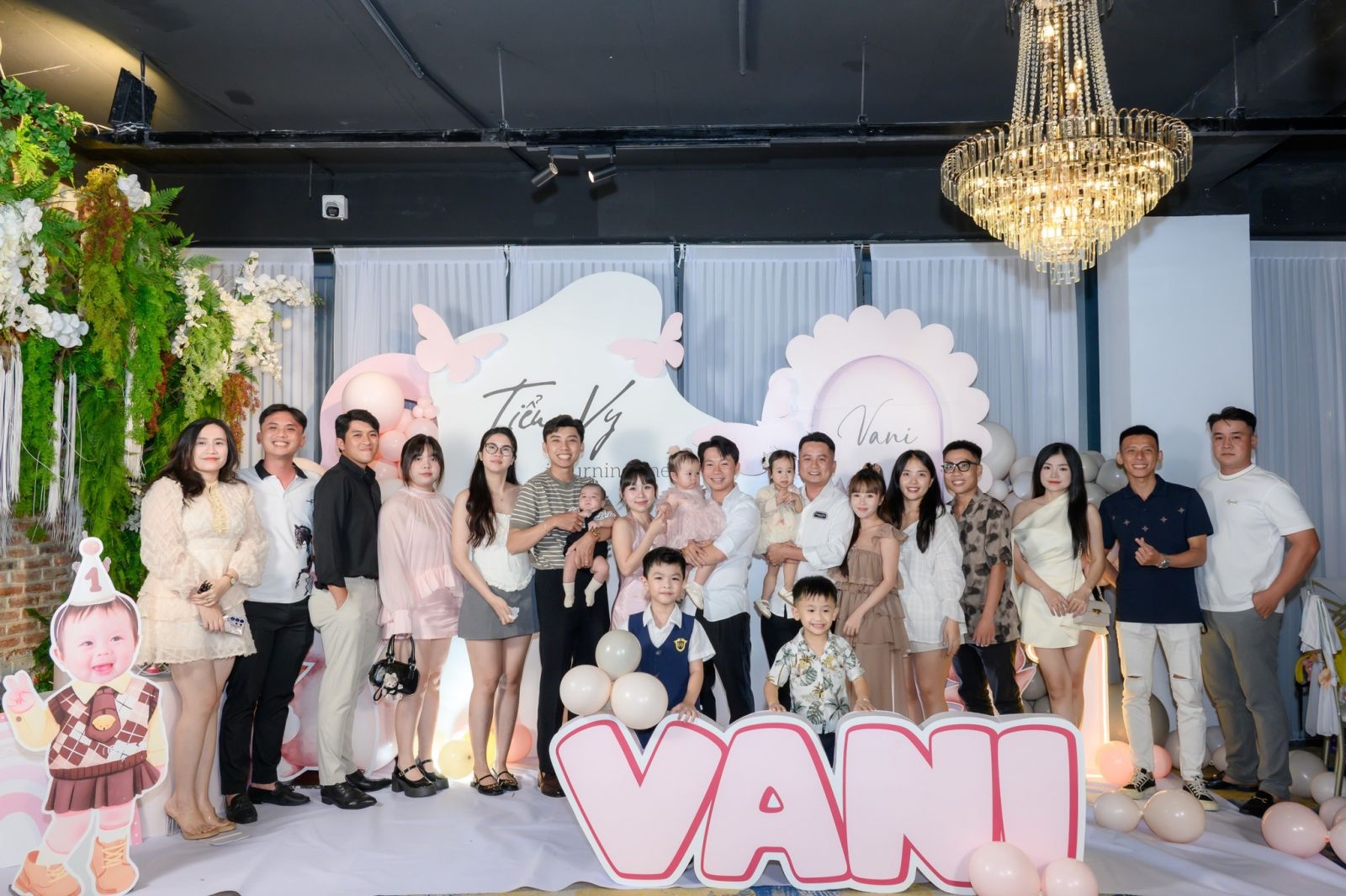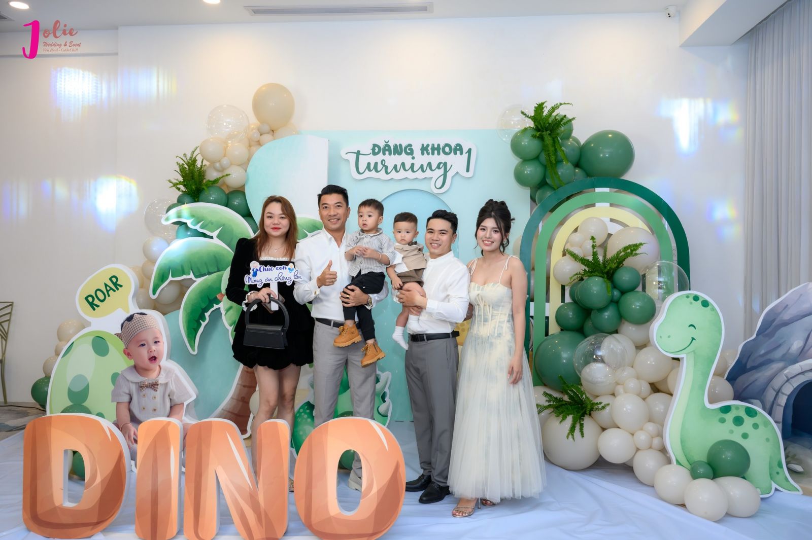 Từ backdrop, bàn gallery, bánh kem, bóng bay đến photobooth, mọi chi tiết đều được chăm chút để tạo nên một tổng thể hài hòa, mang dấu ấn riêng biệt của gia đình.
