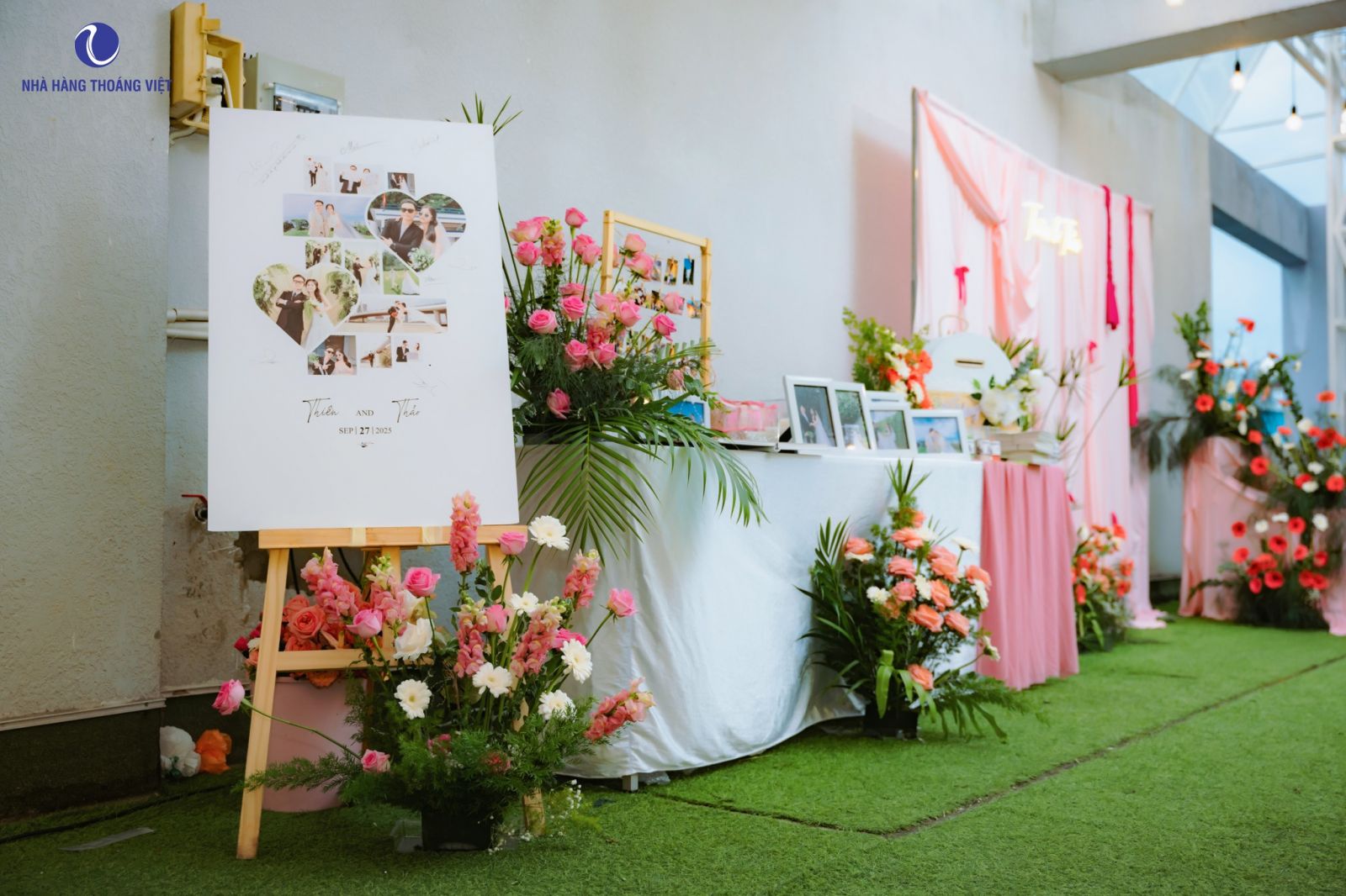 - Hoa tươi & bàn gallery: được sắp đặt tỉ mỉ, ghi lại những khoảnh khắc ngọt ngào của đôi uyên ương.