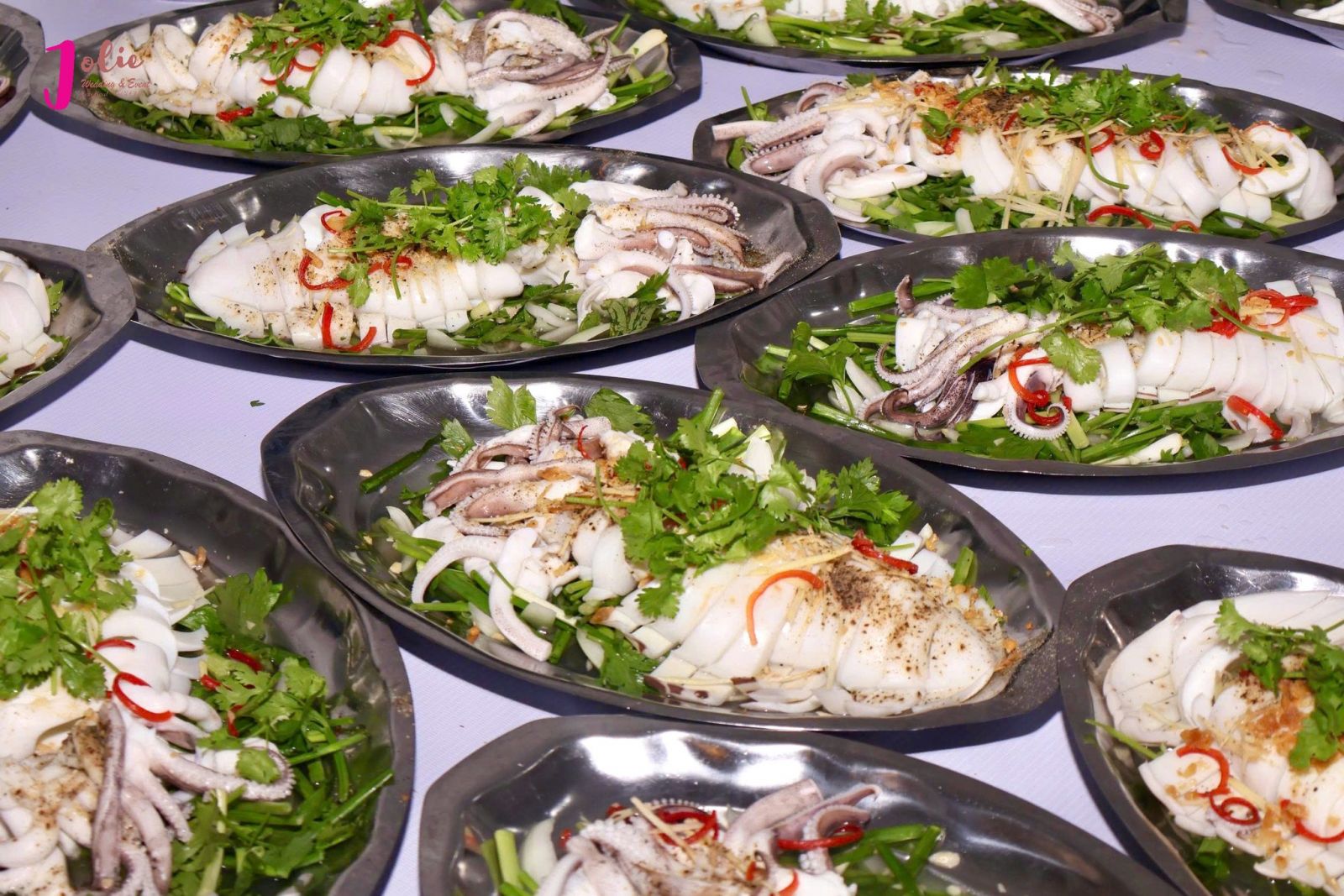 - Món khai vị: Gỏi hải sản, súp cua, salad rau củ, chả giò tôm thịt.