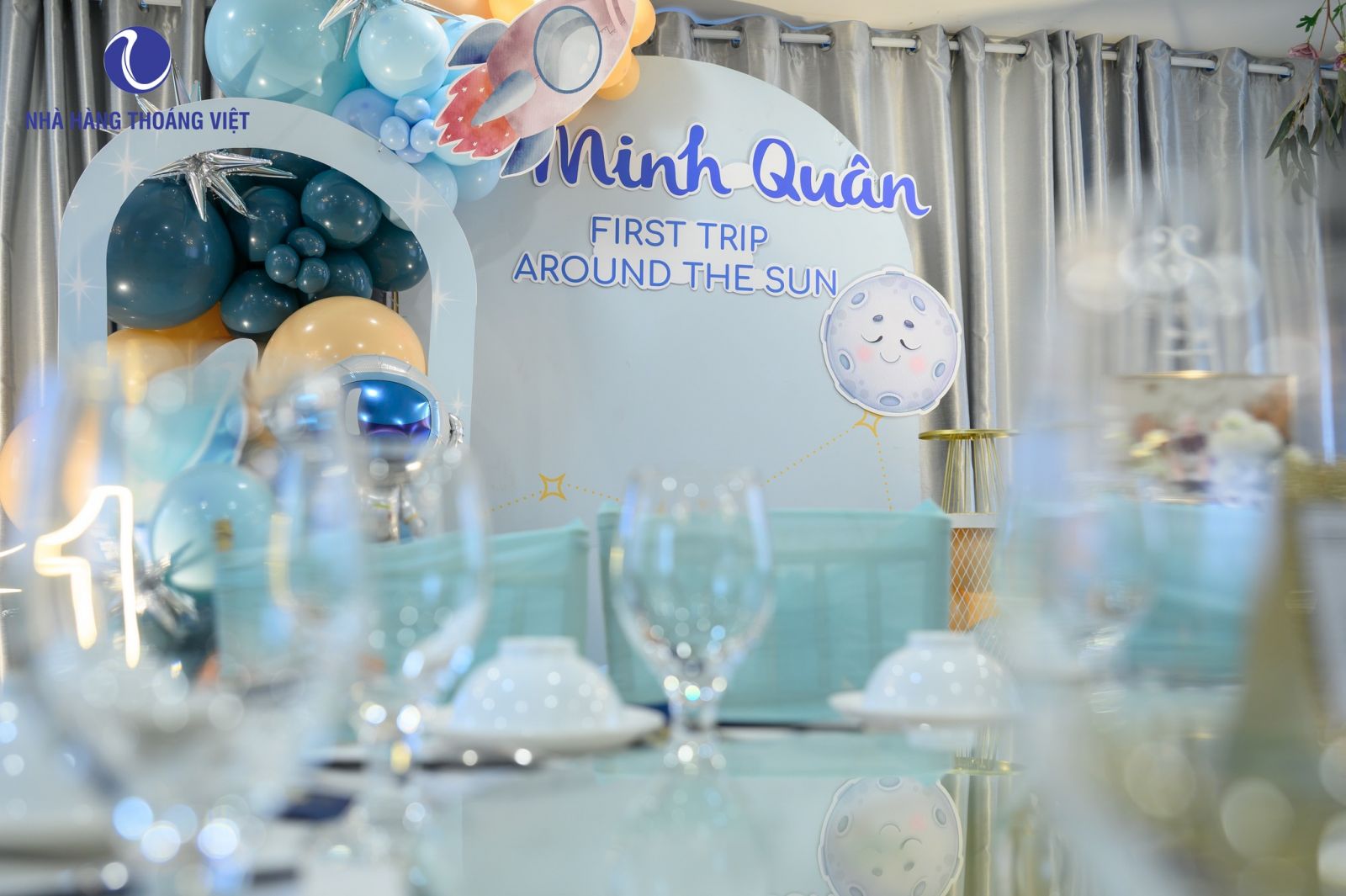 Với tinh thần đó, Nhà hàng Thoáng Việt – Jolie mang đến concept “Trang Sách Đầu Tiên”, nơi mỗi chi tiết trang trí đều được “dệt” bằng câu chuyện của bé. Một không gian không chỉ đẹp để chụp hình, không chỉ sang trọng để đãi tiệc, mà còn đủ tinh tế để lưu giữ những khoảnh khắc đầu đời đáng nhớ nhất của con yêu.